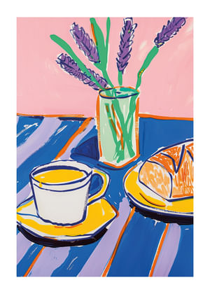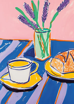 De kunstmuur opent een ruimte met een levendige explosie van kleuren, waar pasteltinten en geometrische vormen samenkomen. De liefdevol afgebeelde motieven van ontbijtervaringen en levendige bloemen creëren een harmonieuze combinatie van rust en energie. Deze posters zijn perfect om elke kamer een gevoel van rust en schoonheid te geven en nodigen je uit om te genieten van de kleine momenten in het leven.