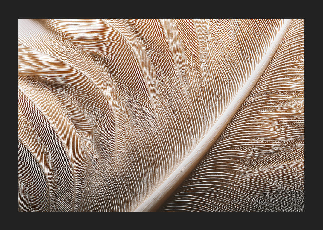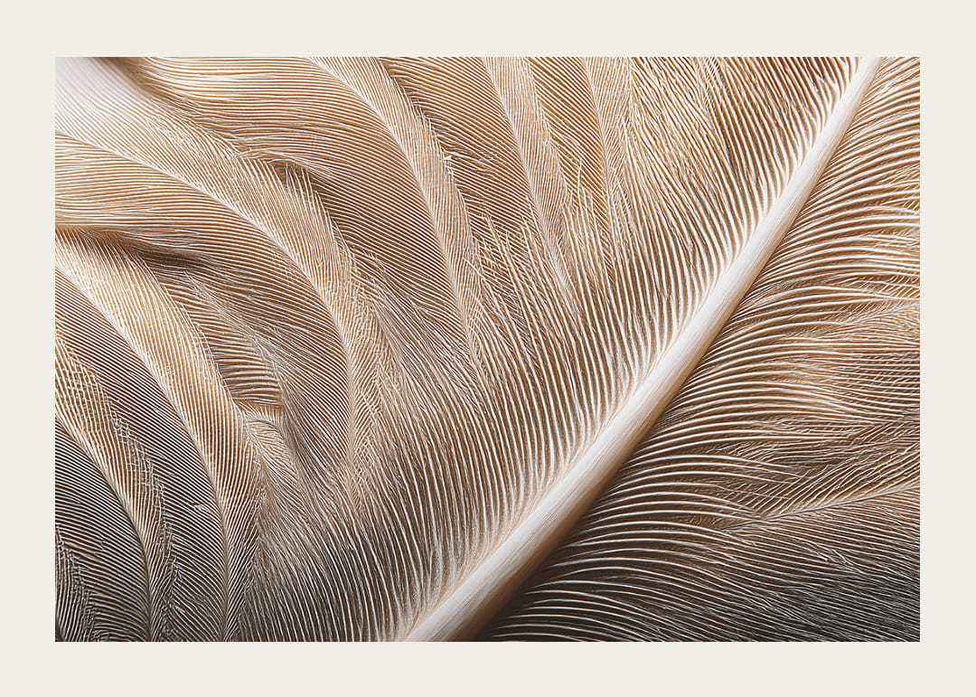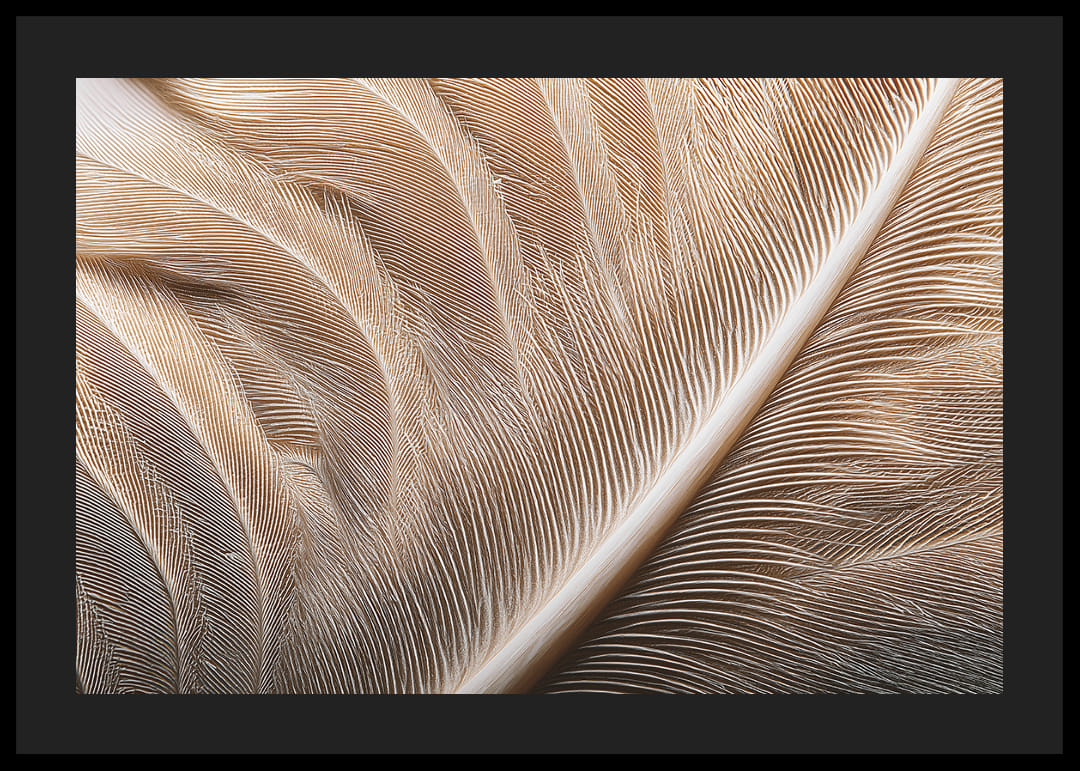 Een poster die de subtiele schoonheid van veren tot in detail vastlegt, waar elke draad van zijdeachtig oppervlak zich verweeft in een magisch spel van licht en schaduw. Deze sensatie van zachtheid en elegantie creëert een rustgevende sfeer, perfect om het gevoel van vrede en harmonie in je huis te versterken. Hang deze poster op om je woonkamer een verfijnde touch te geven en word herinnerd aan de schoonheid van de natuur.