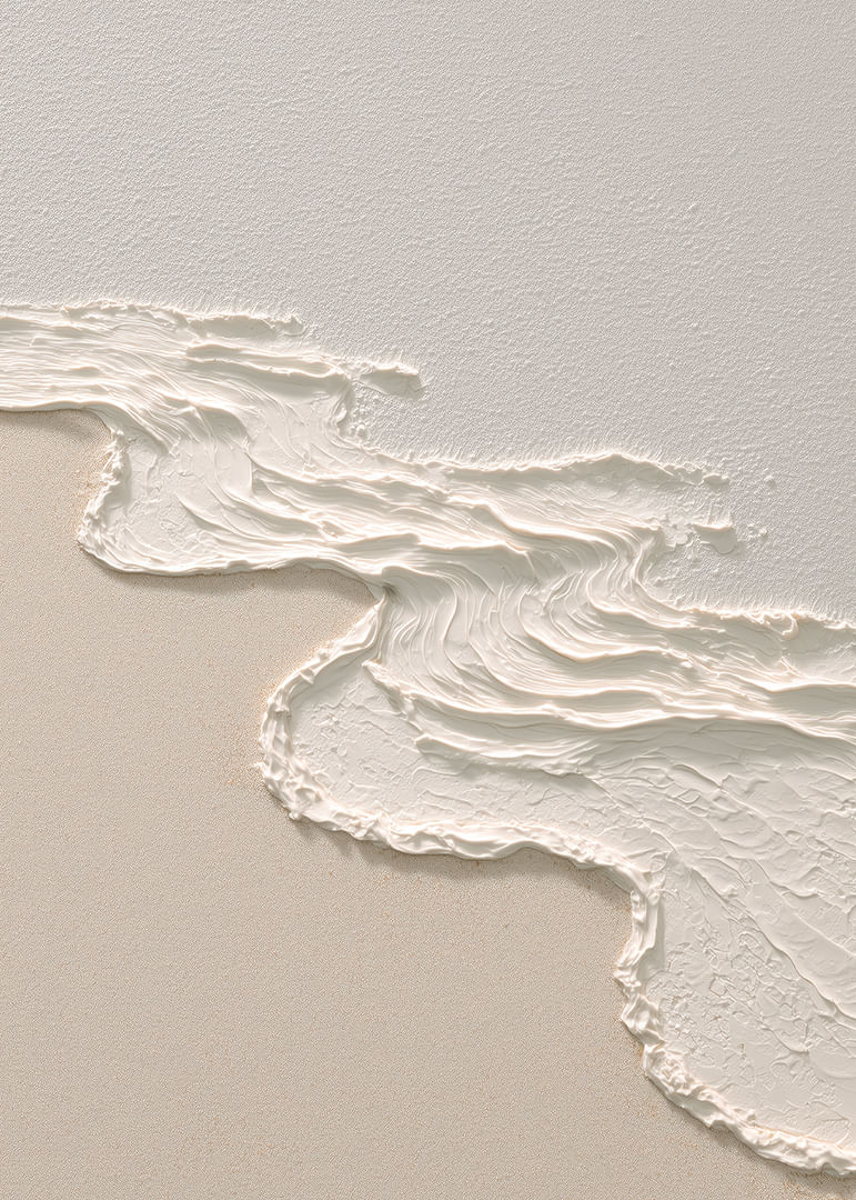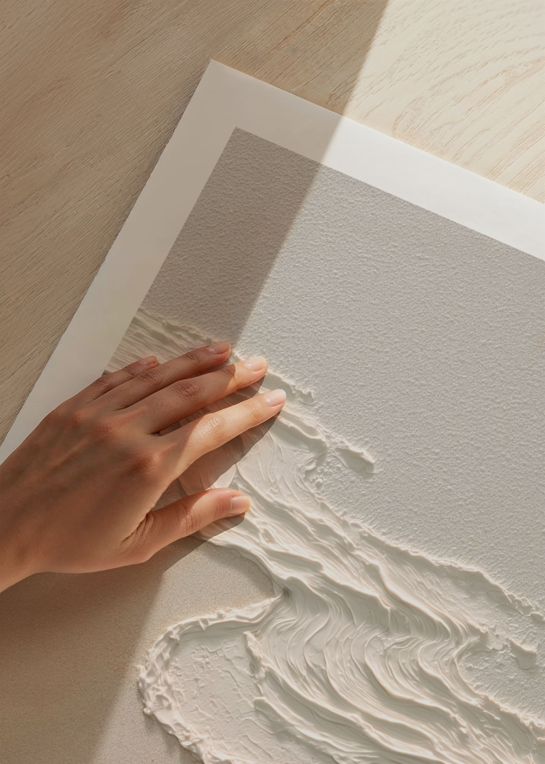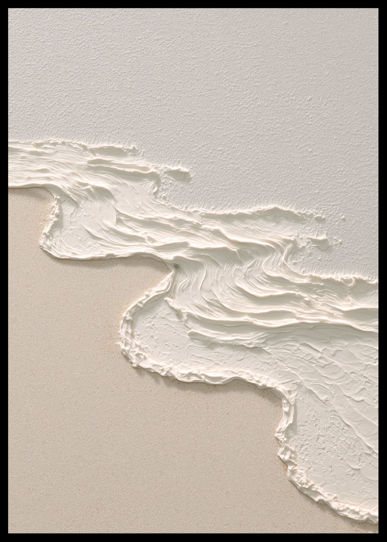 Deze poster legt een elegante en serene compositie van texturen vast, waarbij elke penseelstreek lijkt op zachte golven die een kalme kust raken. De crèmewitte en beige kleurtinten creëren een kalmerende en harmonieuze sfeer. Door deze poster in uw huis te integreren, krijgt u een gevoel van verfijnde eenvoud dat een vredige rust uitstraalt en elke moderne kamer in balans brengt met een vleugje natuurlijke schoonheid.