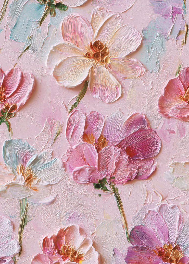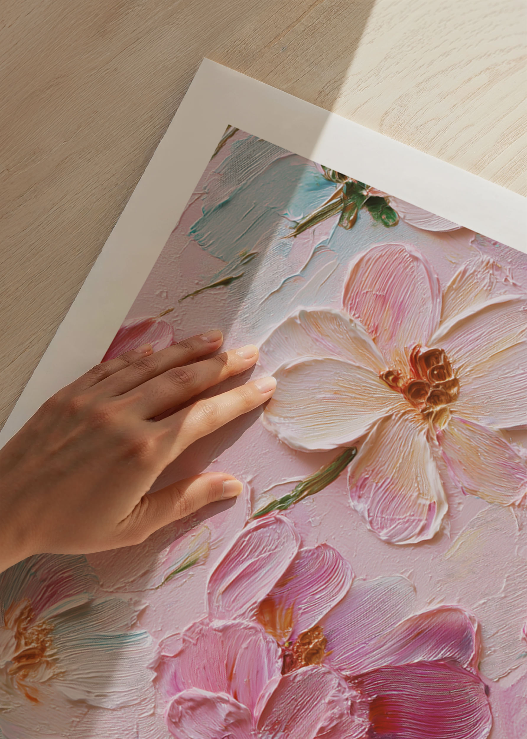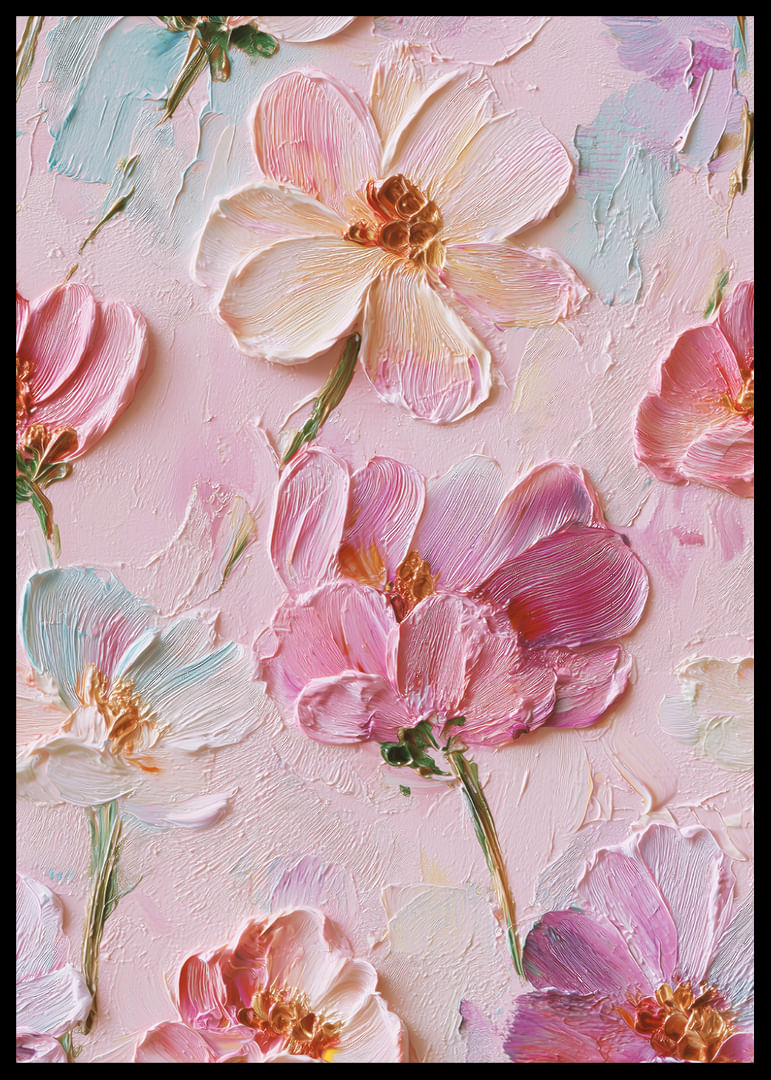 Een visuele symfonie van pastelkleurige bloemen, geschilderd met diepte en textuur, creëert een gevoel van de eerste lente. Deze poster trekt de aandacht met zijn rijke kleurlagen en prachtige details. De bloemen lijken bijna tot leven te komen op het papier en hun tedere schoonheid brengt een frisse en vredige sfeer in elke kamer. Met deze poster krijgt je huis een vleugje natuurlijke elegantie en tijdloze charme.
