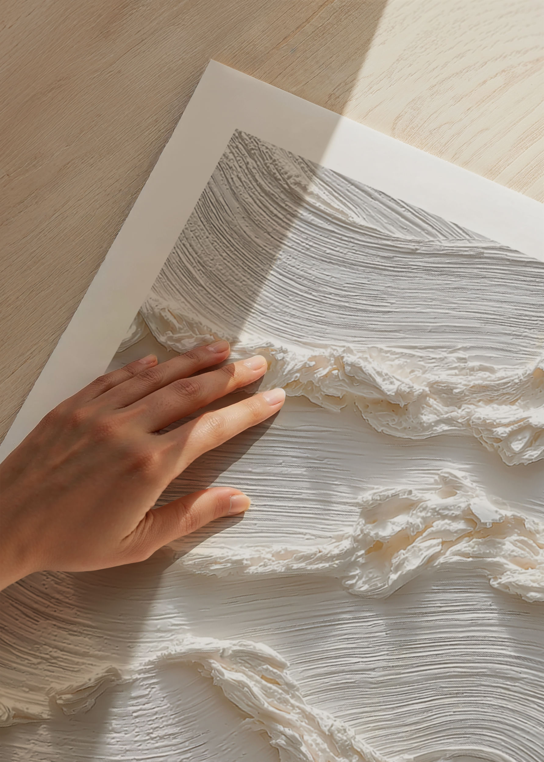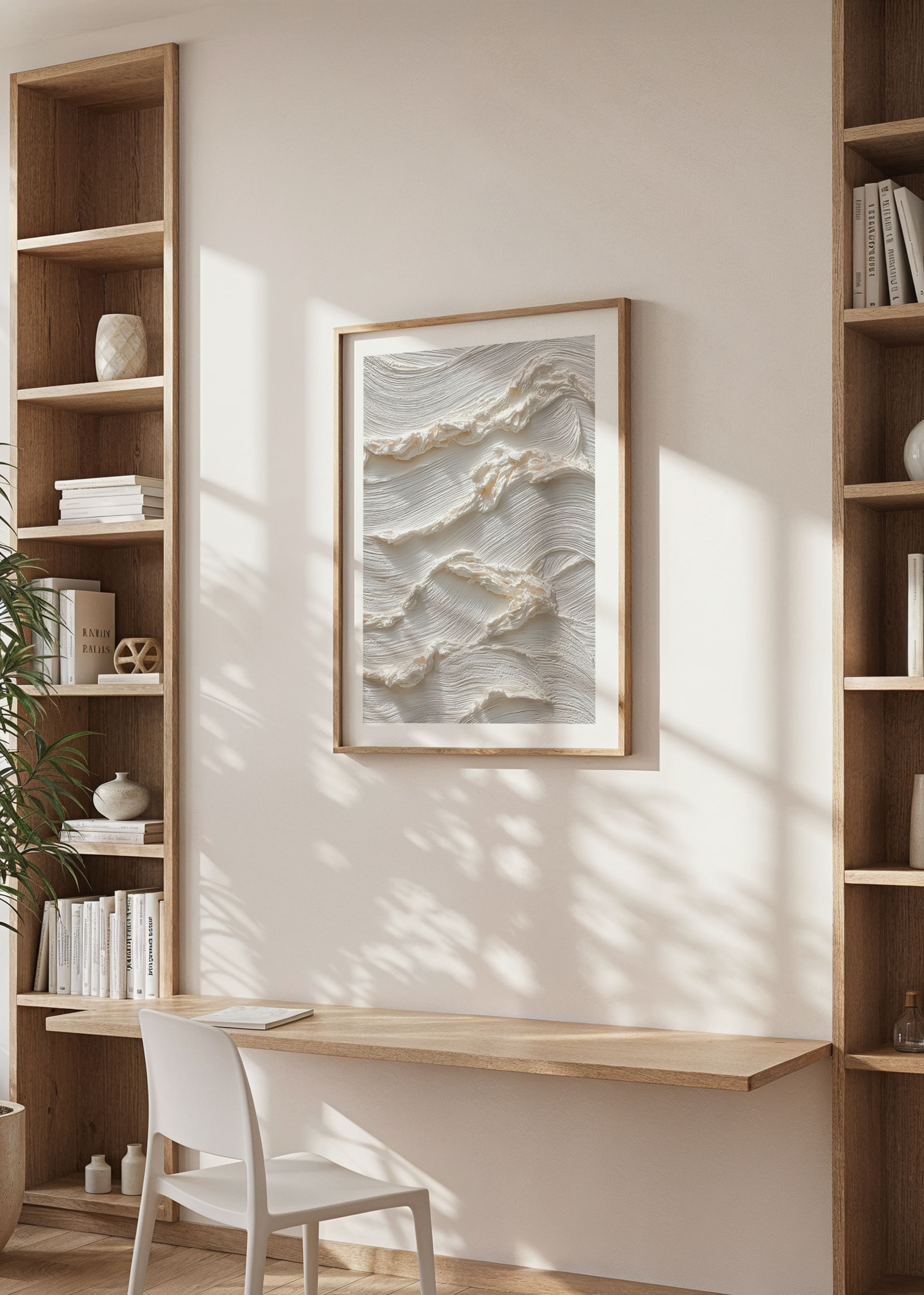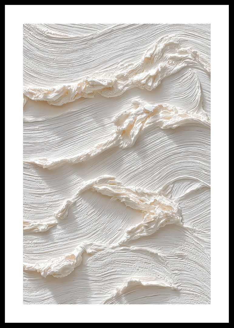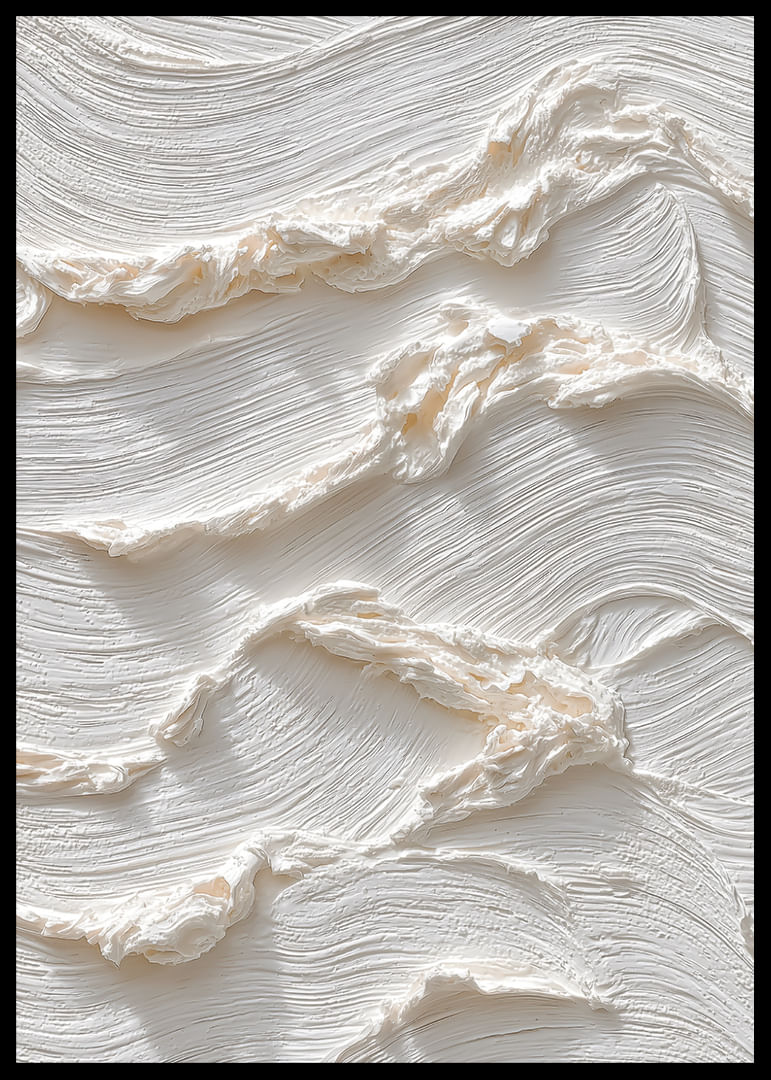 Deze poster trekt de aandacht met zijn zachte, zijdeachtige golven die in een subtiele dans over het oppervlak bewegen. De lichte, crèmekleurige tint straalt rust en evenwicht uit en versterkt de indruk van elegante eenvoud. Een poster als deze transformeert elke kamer in een oase van rust waar schoonheid schuilt in de zachte details en de harmonieuze sfeer.