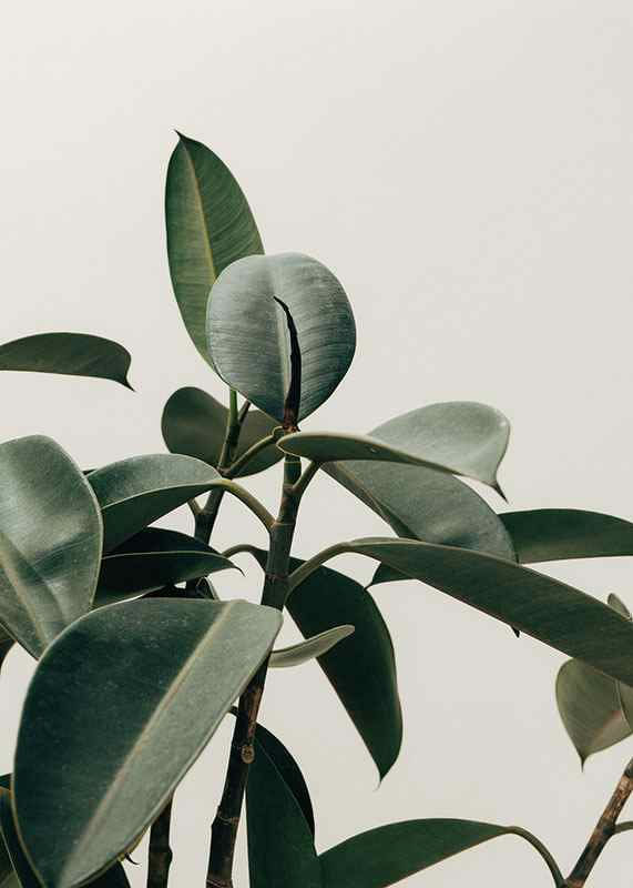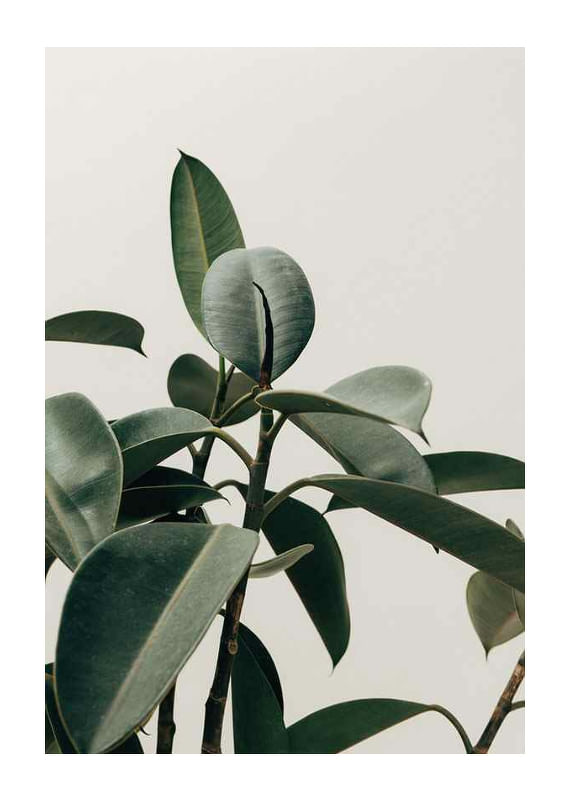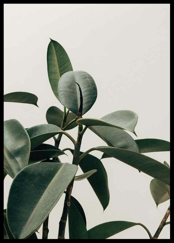 Poster uit de categorie botanisch met foto op een Ficus met groene bladeren tegen een zandkleurige achtergrond.