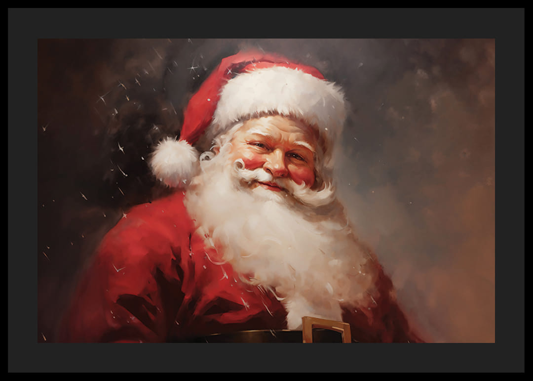 Deze klassieke poster geeft de vrolijke en warme glimlach van de Kerstman weer, een iconisch symbool van de magie en vreugde van Kerstmis. Met roze wangen en een vriendelijke uitstraling verspreidt hij een gevoel van veiligheid en nostalgie, perfect om je huis te vullen met kerstsfeer. Een tijdloos beeld dat doet denken aan de verwachting en vreugde van de kindertijd – ideaal voor het creëren van een warme en gastvrije sfeer tijdens de feestdagen
