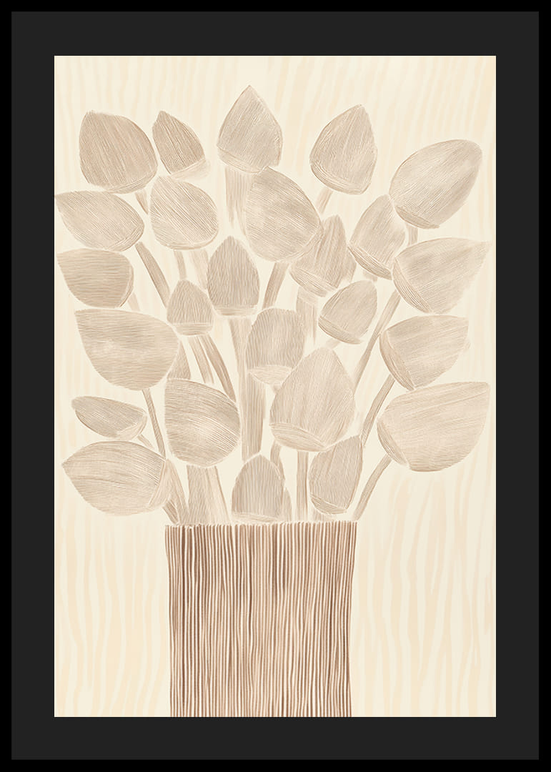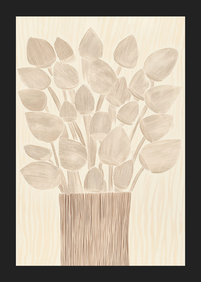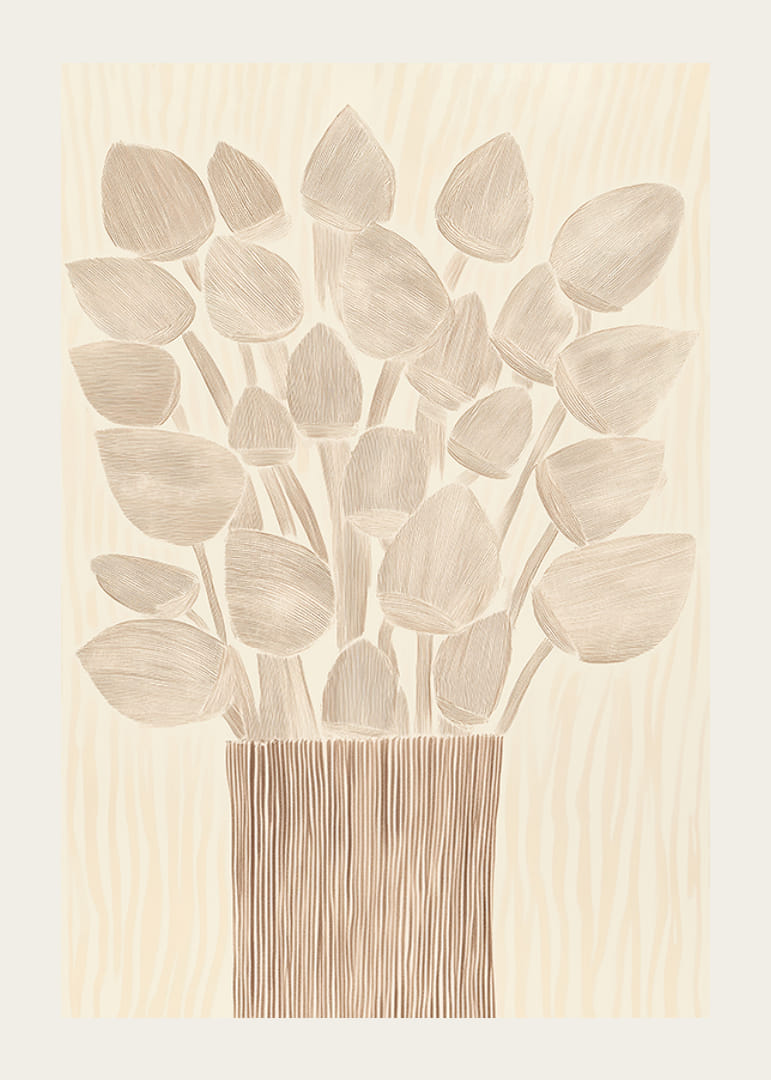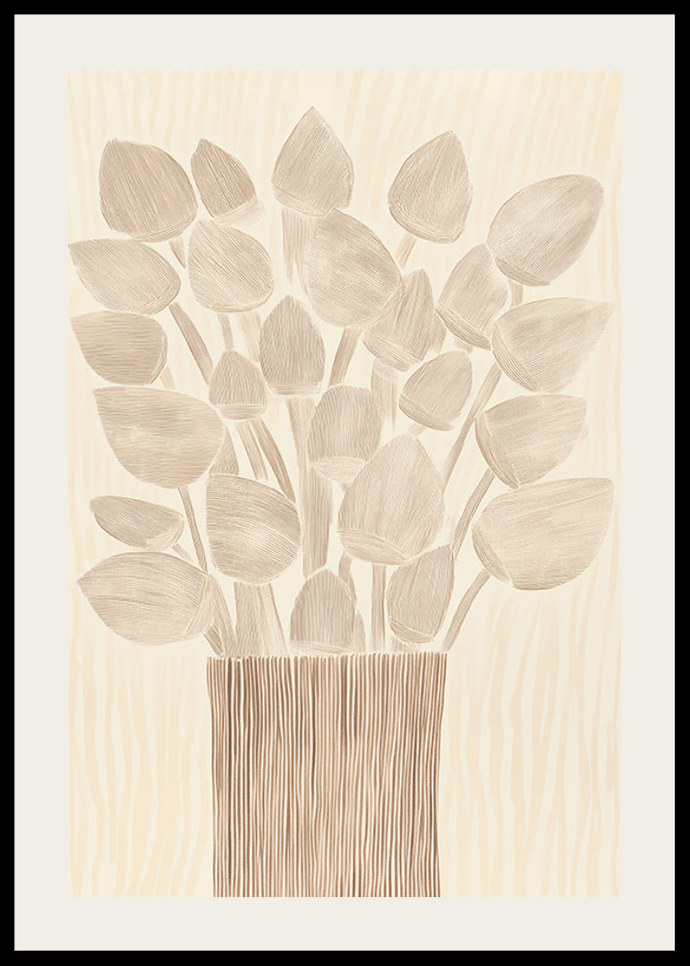 Ontdek een poster die uw kamer verandert in een oase van rust en elegantie. Met zachte, aardse tinten en een delicaat patroon van bloemen in een gestileerde vaas straalt dit beeld tijdloze schoonheid uit. Ideaal om een ​​warme en gastvrije sfeer in uw huis te creëren.